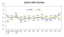 2025年11月份居民消费价格同比上涨0.7%