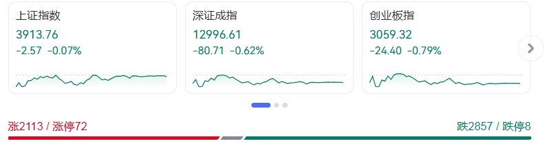 10月22日,A股市场呈现震荡整理格局,三大指数小幅分化,成交量较昨日明显萎缩,板块结构性特征凸显。截至收盘,上证指数微跌0.07%报3913.76点,坚守3900点整数关口;深证成指与创业板指分别下跌0.62%和0.79%,收报12996.61点和3059.32点。沪深两市成交额仅16679亿元,较昨日大幅缩量2060亿元,显示市场交投活跃度有所降温。