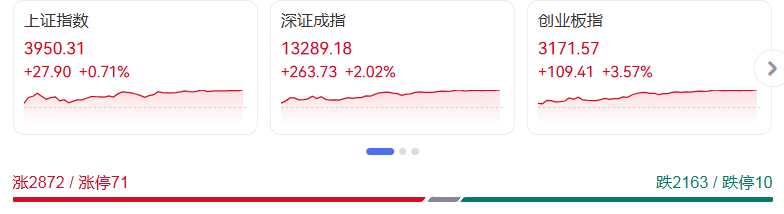 10月25日,A股市场迎来里程碑时刻,三大指数集体走强,上证指数上涨0.71%收报3950.31点,创下近十年新高。深证成指、创业板指分别大涨2.02%和3.57%,收于13289.18点和3171.57点,呈现“权重稳、成长强”的格局。沪深两市成交额放量至19742亿元,较昨日激增3303亿元,创下近期成交峰值,彰显市场做多热情。