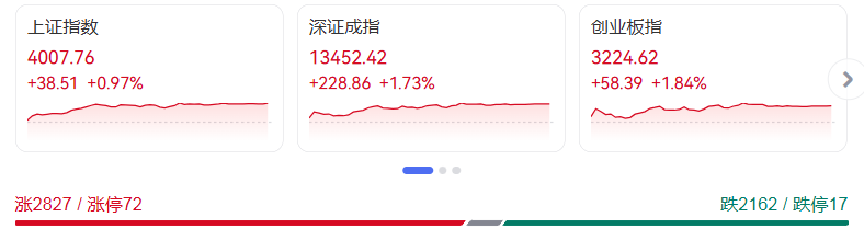 11月6日,A股市场迎来标志性时刻,主要指数集体走强,上证指数时隔多日后正式收复4000点整数关口,市场交投活跃度显著提升。截至收盘,沪指报4007.76点,上涨0.97%;深证成指涨1.73%收于13452.42点;创业板指与科创50指数表现更为强劲,分别上涨1.84%和3.34%,收报3224.62点和1436.86点。沪深两市成交额放量至20552亿元,较前一交易日增加1829亿元,创近期成交新高。