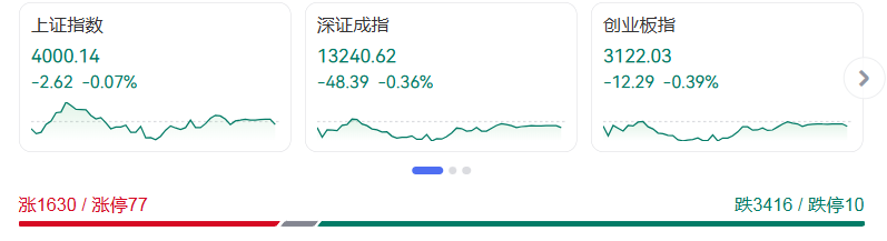 11月12日,A股三大指数呈现震荡整理态势,沪指在4000点关口展开激烈争夺,最终勉强守住关键点位。截至收盘,上证指数报4000.14点,微跌0.07%;深证成指下跌0.36%至13240.62点;创业板指同步回调0.39%,收于3122.03点。市场交投活跃度略有下降,沪深两市成交额达19450亿元,较前一交易日缩量486亿元。