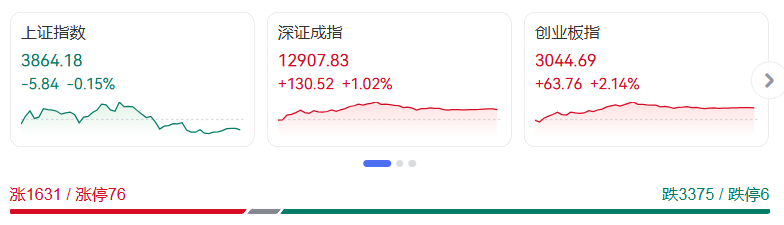 11月26日,A股市场呈现明显结构性分化,沪指微跌调整,深证成指与创业板指则强势上行。截至收盘,上证指数报3864.18点,下跌0.15%;深证成指涨1.02%,收于12907.83点;创业板指表现突出,大涨2.14%,收报3044.69点。沪深两市成交额达17833亿元,较前一交易日小幅缩量288亿元,市场交投保持活跃。