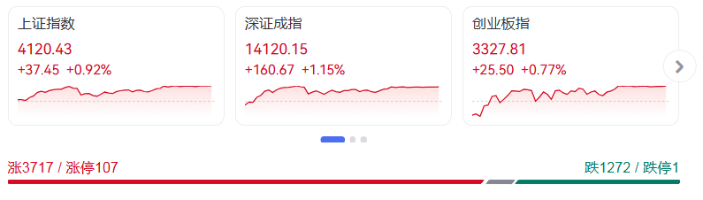 1月9日, A股市场今日延续强劲上攻态势,上证指数实现“16连阳”并成功站上4100点关口,创下逾10年以来的新高,市场交投活跃度同步飙升,沪深京三市成交额突破3万亿元大关。